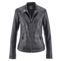 Black jacket made of faux leather.