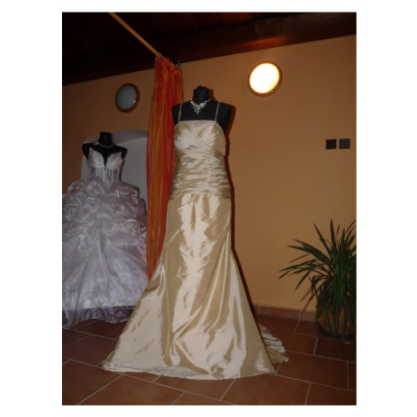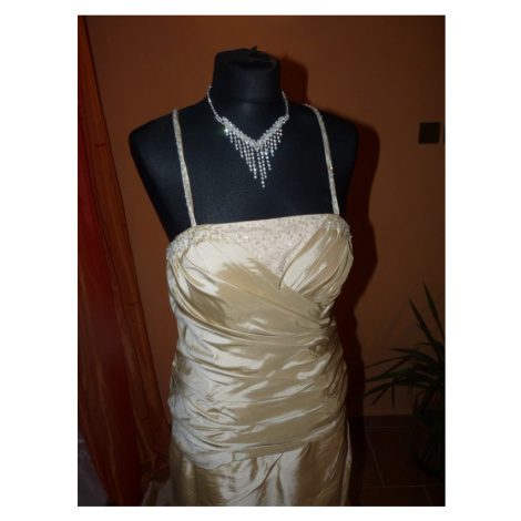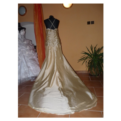 Champagne svatební šaty nebo šaty pro matku nevěsty. Šaty mají delší vlečku, jsou šité na zip, tenká špagetová ramínka a rovný výstřih.